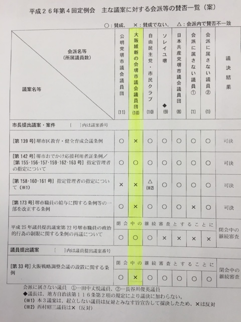 大阪維新の会堺市議会議員団としては、結論から言うと反対の意を示しました。