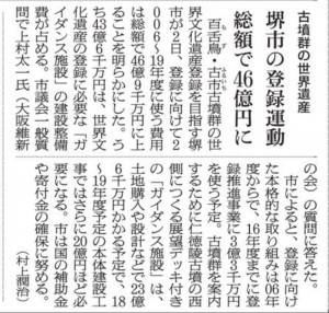 歴史文化にぎわいプラザにつきましては、かねてから歴史文化施設は旧市街地ではなく大仙公園に集約すべきと提案してきましたが、現状、旧堺病院跡地で建設が着手されています。
