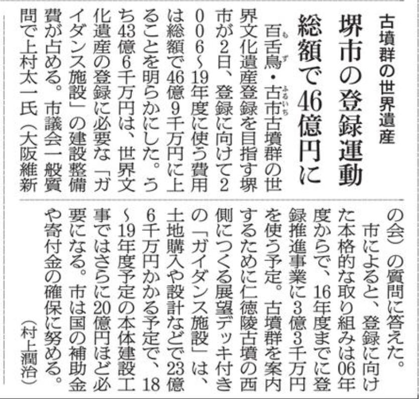 また、先日には堺市がセレッソ大阪のホームタウンに決定しましたが、堺原理主義者である竹山市長の判断とは到底思えません。そのチーム名が『セレッソ大阪堺』ならまだしも、このままでは堺のアイデンティティーを無くしたのも同然だと思います。