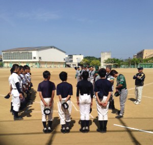 Facebookでは前に投稿させてもらっていたのですが、障がい者野球チーム『阪和ファイターズ』と三原台中学校野球部との練習試合が、11日に行われました。