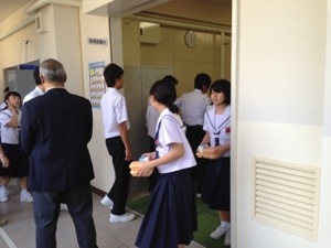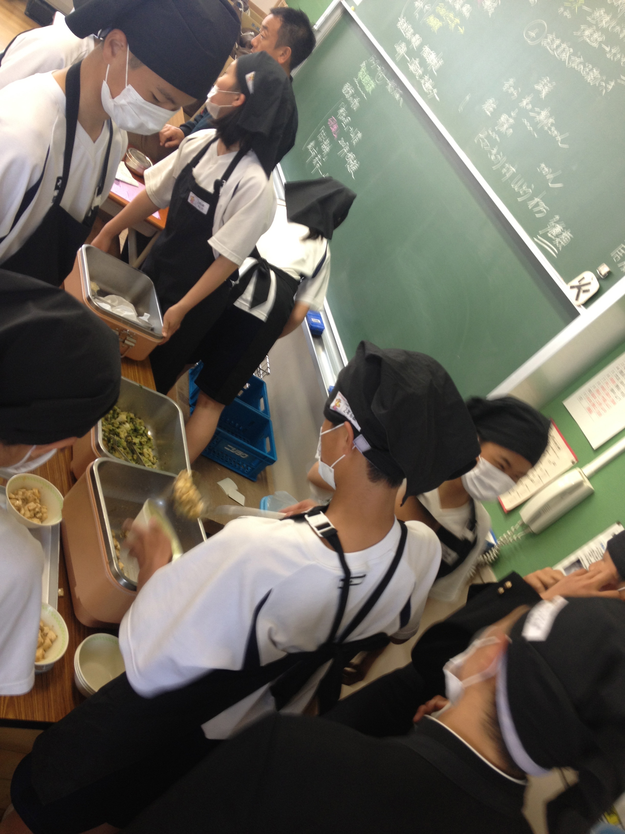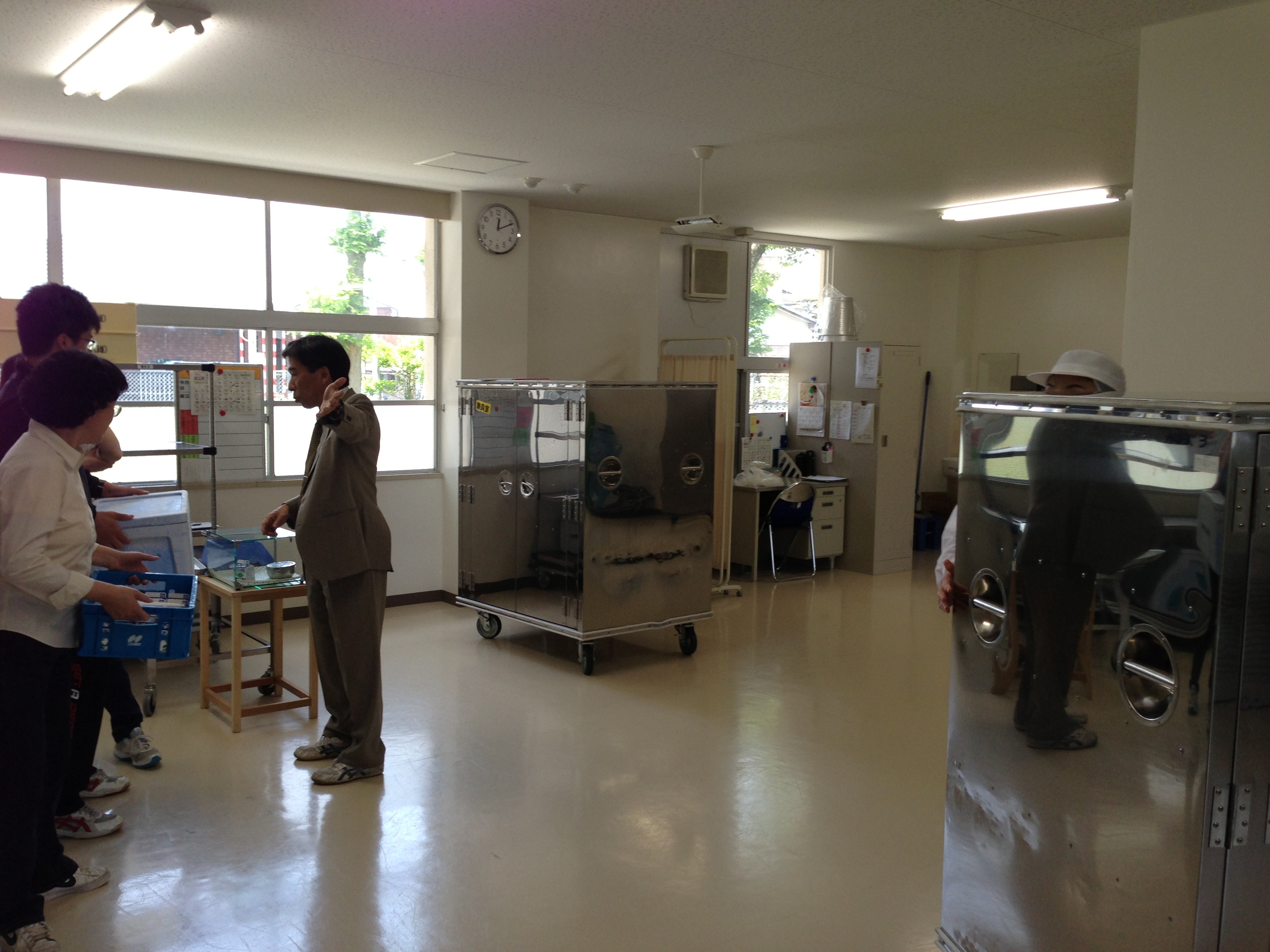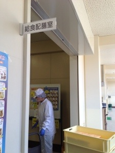 ここ曽根中学校は、空き教室を改装して配膳室になりました。