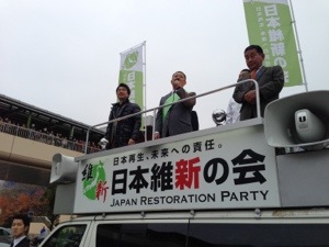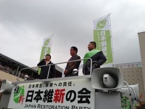 寒空の中、たくさんの方々にお集り頂き、大阪府第17選挙区支部長 馬場伸幸、元衆議院議員 西村真悟、松井一郎幹事長、橋下徹代表代行の声を直接聞いて頂きありがとうございました。